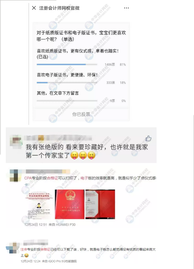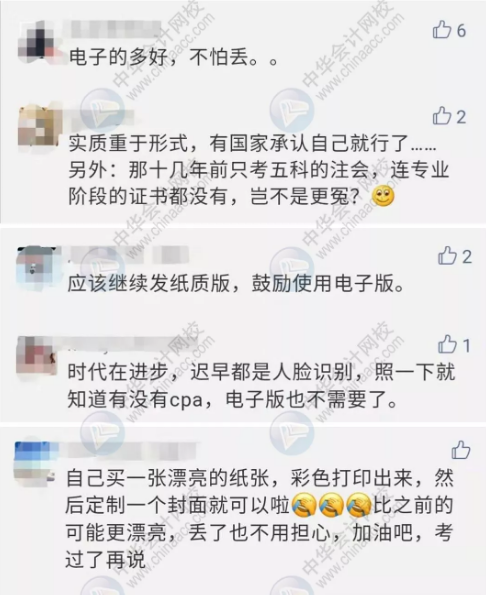 电子化证书是大势所趋,注册会计师证书也不能避免电子化的命运,只要证书含金量不变,其实我们不用在意形式。目前,先不管电子版还是纸质版,通过考试才是正事!2021年的考生们,今天你学习了吗?