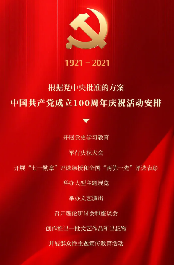 定了!中国共产党成立100周年庆祝活动安排公布!