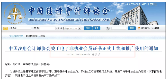 中国注册会计师协会关于电子非执业会员证书正式上线和推广使用的通知
