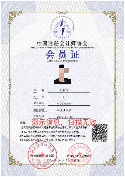 从以上两份通告可以看出:非执业注册会计师证书将全面实现电子化,也就是说以后像下方这样的非执业会员证书的纸质版将成为历史。拿到2019年纸质版非执业注册会计师证书的宝宝,你们手里的证书是“绝证”啦!